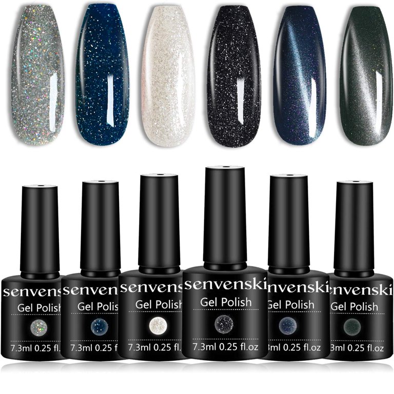 Senvenski Diamond Gel Nail Polish Cat Eye Magnetic Glitter Shining Shimmer Starrily Sparkle Grey Blue Snow White Black Girlfriend Gift Soak Off Uv Led Manicure Art Varnish Set Kit 6 Colors Hs001
